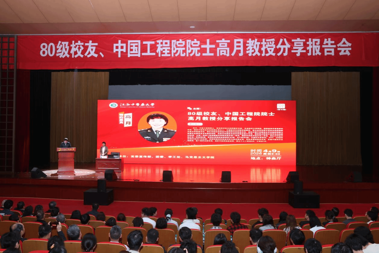“在江西中医药大学的5年求学时光,是我梦想开始的地方。”高月院士的报告会以“大国重器与时代使命——以科技与匠心铸就国家脊梁”为题,深情回忆她在阳明路老校区的求学岁月。501宿舍的灯火、教室对面的解剖楼、食堂一角五分钱的炒肉、每天清晨沿着八一大道的晨跑……一个个鲜活的细节,串联起她最珍贵的青春记忆。“惟学惟人、求强求精”的校训,早已刻进她的骨子里,成为她一生治学报国的精神底色。